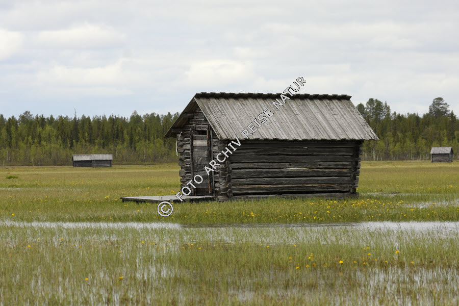 Aue, Bauwerk, Feuchtgebiet, Gebäude, Heuschober, Holzhütte, Hütte, Kate, Landschaft, Naturschutzgebiet, Ort, Sumpfwiese, Vasikkavuoma Naturreservat,