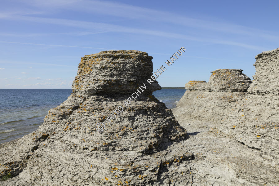 Abbruchkante, Felsen, Felsenstrand, Felsklippe, Felsküste, Felsnadel, Gewässer, Kalkstein, Kalmarsund, Küste, Landschaft, Material, Meer, Naturstein, Ostsee, Steilküste, Stein, Strand,