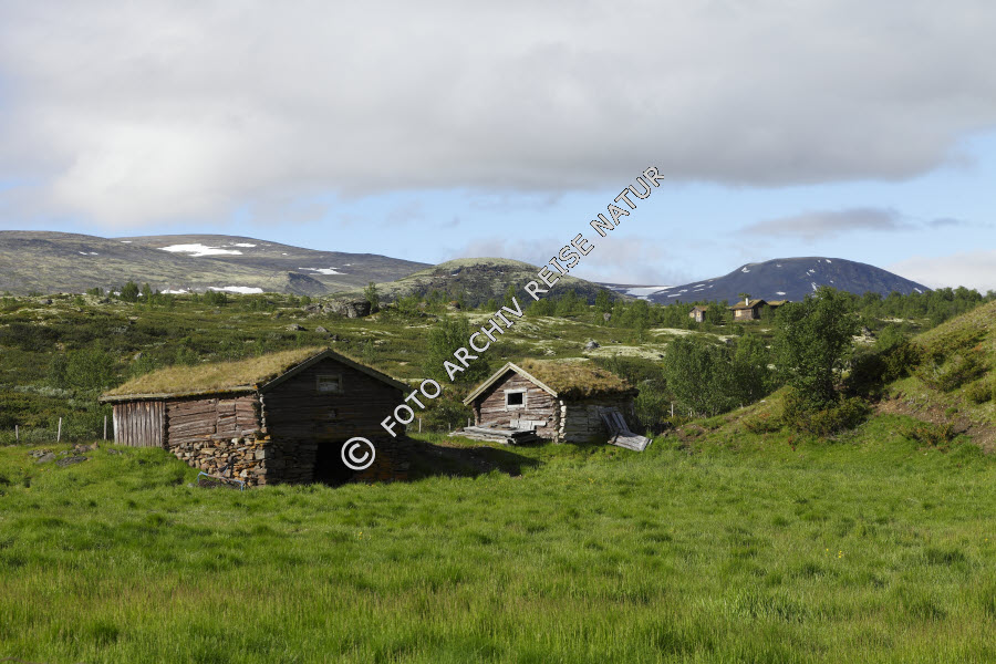 Bauwerk, Dach, Fjell, Gebäude, Gebäudeteil, Grasdach, Hjerkinn, Hütte, Landschaft, Norwegen, Oppland,