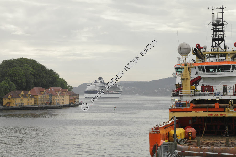 Bauwerk, Bergen, Boot, Bryggen, Fahrzeug, Fischerboot, Fischtrawler, Gebäude, Hafen, Hafenausfahrt, Haus, Hordaland, Kreuzfahrtschiff, Lagerhaus, Norwegen, Schiff, Speicher, Verkehrsmittel, Wasserfahrzeug,