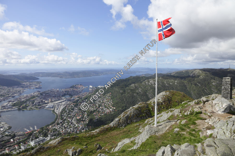 Keywords: Bauwerk, Bergen, Fahne, Felsblock, Felsen, Felsrücken, Fjord, Flagge, Gegenstand, Gewässer, Hafen, Hordaland, Insel, Kulturlandschaft, Landschaft, Material, Meer, Nordmeer, Norwegen, Schäre, Schärengarten, Stadt, Stadtansicht, Stein, Ulriken,