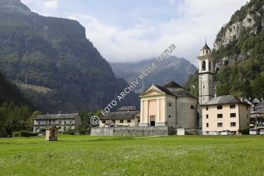 Keywords: Bauwerk, Berg, Bergdorf, Berghang, Bergkette, Bergmassiv, Dorf, Gebirge, Gebäude, Glockenturm, Hochtal, Kirchdorf, Kirche, Kirchenschiff, Kirchturm, Kulturlandschaft, Landschaft, Sakralbau, Steinkirche, Tal, Turm,