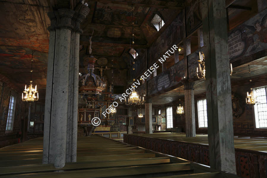 Basilika, Bauwerk, Gebäude, Gebäudeteil, Gegenstand, Habo Kyrka, Holzkirche, Jönköping, Kapitell, Kirche, Kirchenschiff, Kronleuchter, Kultur, Kulturdenkmal, Kulturstätte, Leuchtmittel, Mittelschiff, Sakralbau, Schweden, Seitenschiff, Småland, Säule, historisch,