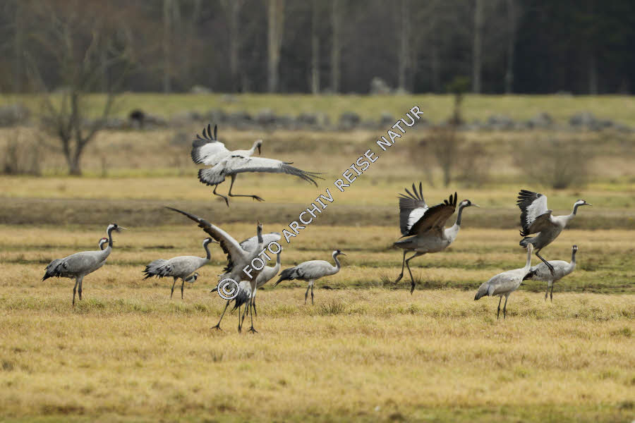 Tanzende Kraniche am Hornborgasjön bei Bjurum