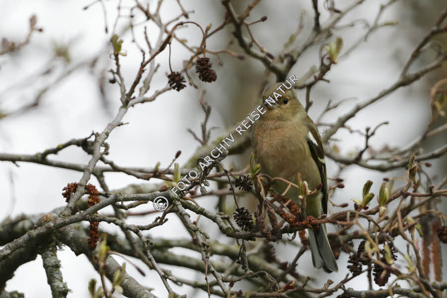 Buchfinkweibchen in Schwarzerle