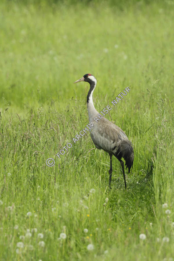 Deutschland, Fauna, Frühsommerwiese, Krakow am See, Kranich, Grus grus, Kranichvogel, Gruiformes, Landschaft, Mecklenburg-Vorpommern, Seegrube, Vogel, Wiese,