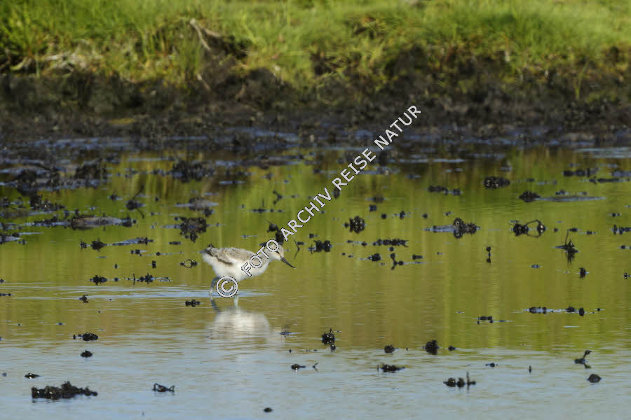 Fauna, Flachwasserzone, Gewässer, Jungtier, Jungvogel, Küken, Landschaft, See, Strandsee, Säbelschnäbler, Recurvirostra avosetta, Vogel,