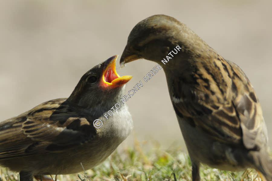 Ereignis, Fauna, Füttern, Geschehen, Haussperling, Passer domesticus, Jungtier, Ottenby, Schweden, Sperlinge, Tätigkeit, Versorgen, Vogel, Öland,