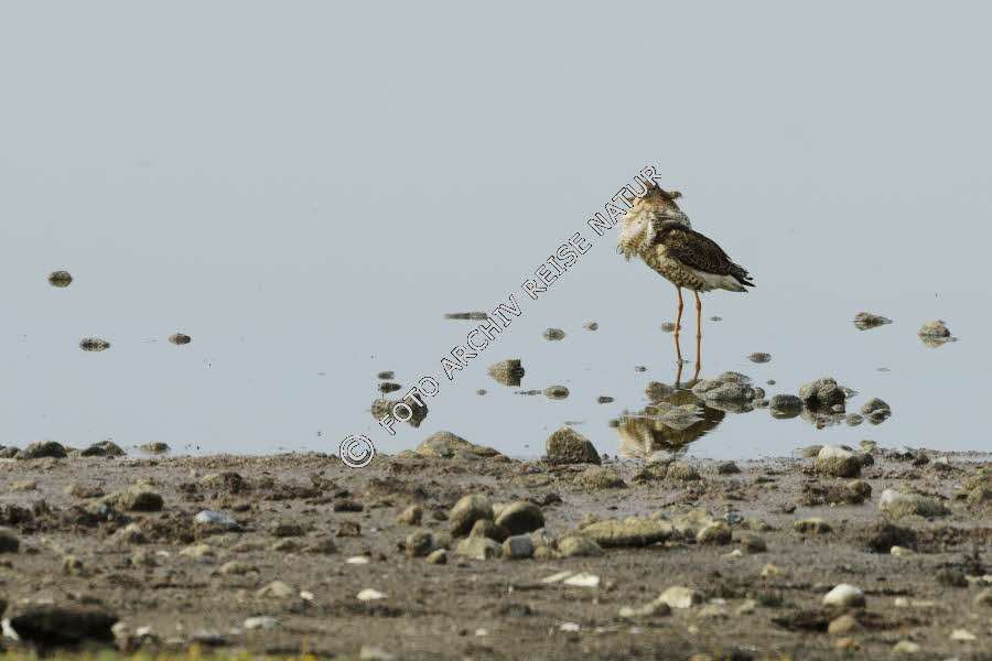 Kampfläufer im Flachwasser des Strandsees am Grünen Brink