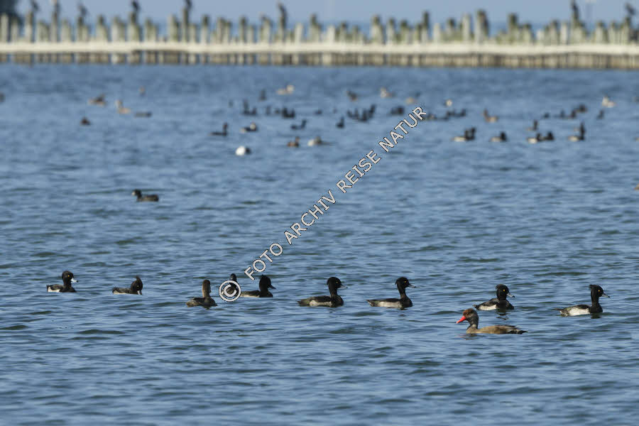 Bauwerk, Bodensee, Bucht, Buhne, Entenvögel, Fauna, Gaißau Alter Rhein, Gewässer, Holzbuhne, Kolbenente, Netta rufina, Landschaft, Naturschutzgebiet, Ort, Reiherente, Aythya fuligula, Rheindelta, See, Vogel, Vorarlberg, Wetterwinkel, Österreich,