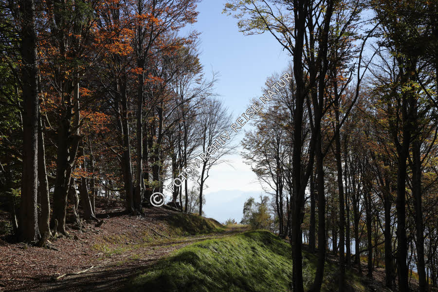 Keywords: Baum, Baumstamm, Bauwerk, Berg, Berghang, Buche, Fagus, Buchengewächs, Buchenwald, Farbe, Flora, Forstweg, Landschaft, Laubwald, Verkehrsweg, Wald, Wanderweg, Weg, bunt,