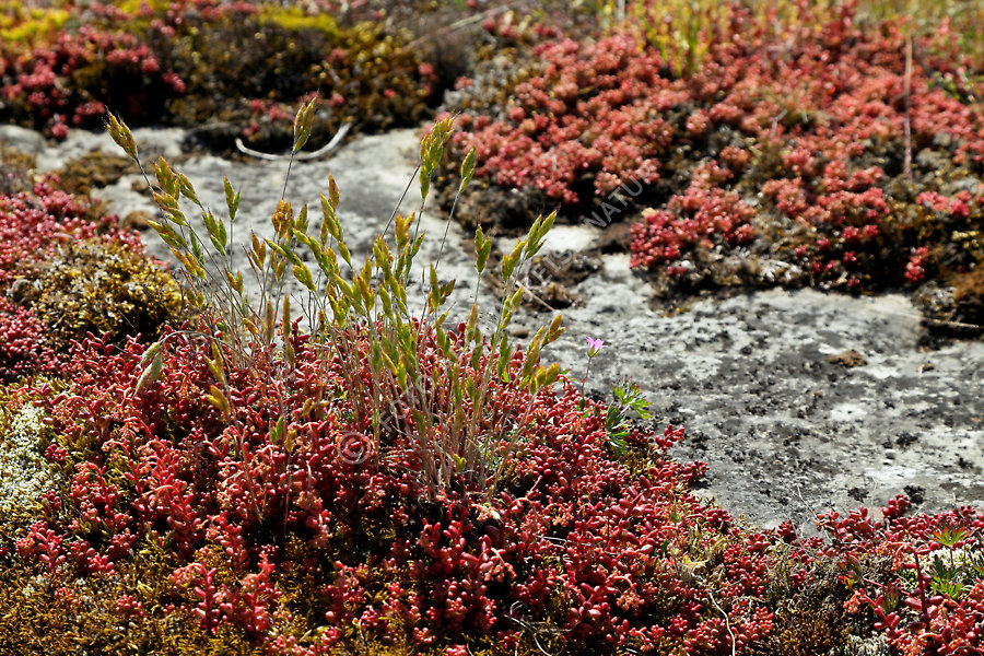 Offen liegender Kalkstein gesäumt von Scharfem Mauerpfeffer