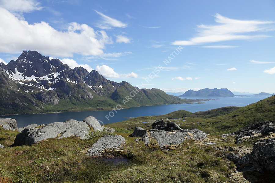 Austnesfjorden, Austvågøya, Berg, Bergkette, Bergmassiv, Fjord, Gebirge, Gewässer, Insel, Landschaft, Litlmolla, Lofoten, Nordland, Norwegen, Sildpollen, Sildpollheia,