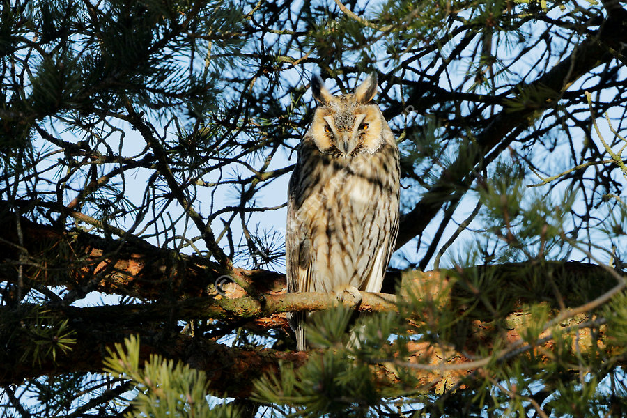 Baden-Württemberg, Baum, Deutschland, Eulen, Fauna, Flora, Kiefer, Pinus, Kieferngewächs, Schwarzwald, Villingen, Vogel, Waldohreule, Asio otus,