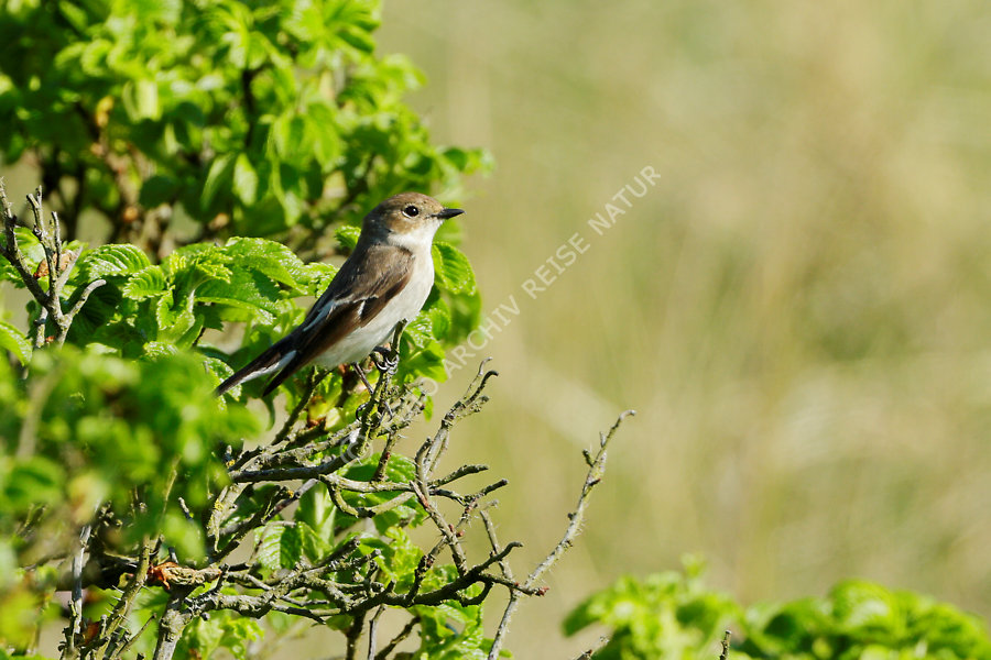 Deutschland, Fauna, Fliegenschnäpper, Flora, Geschlecht, Gewässer, Hecken-Rose, Rosa corymbifera, Landschaft, Meer, Nordsee, Rantum, Rose, Rosa, Rosengewächs, Schleswig-Holstein, Schleswig-Holsteinisches Wattenmeer, Sylt, Trauerschnäpper, Ficedula hypoleuca, Vogel, Weibchen, weiblich,