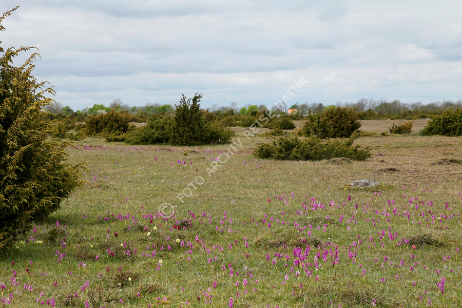 Alvar, Baum, Flora, Karlevi Södra Naturreservat, Karstlandschaft, Landschaft, Männliche Knabenkraut, Orchis mascula, Naturschutzgebiet, Orchideengewächs, Ort, Stora Alvaret, Wacholder Juniperus, Zypressengewächs,