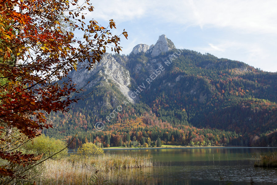 Allgäu, Alpen, Alpsee, Bayern, Bergsee, Deutschland, Farbe, Flora, Gebirge, Gewässer, Gras, Landschaft, Reet, Schilfgürtel, Schilfrohr , Phragmites australis, Schwangau, See, Süßgras, bunt,