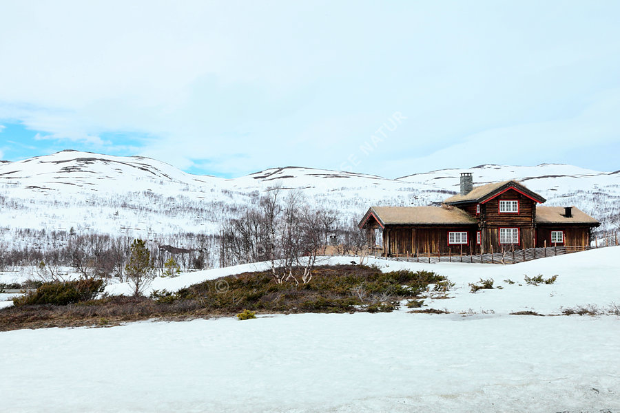 Alm, Bauwerk, Bergkette, Blockhaus, Dach, Gebirge, Gebäude, Gebäudeteil, Grasdach, Haus, Hochtal, Holzhaus, Kulturlandschaft, Landschaft, Norwegen, Sør-Trøndelag, Tal, Weide,