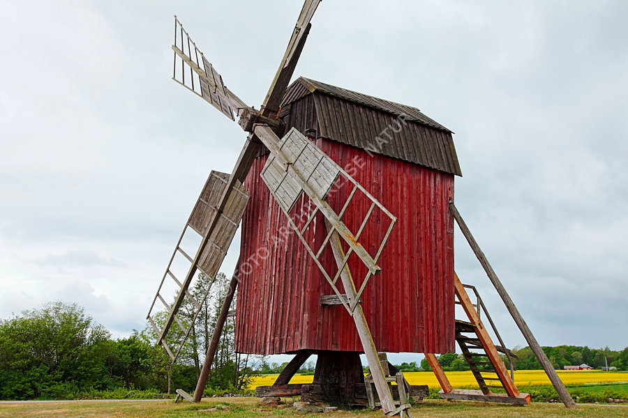 Bauwerk, Bockmühle, Feld, Gebäude, Kulturlandschaft, Mühle, Rapsfeld, Schweden, Störlinge, Windmühle, Öland,