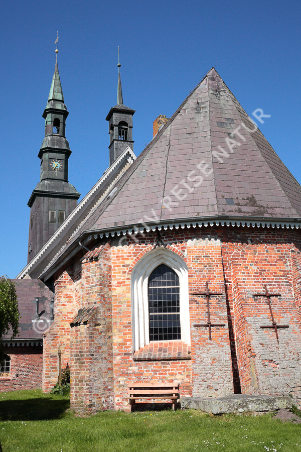 Backsteinkirche, Bauwerk, Chor- Altarraum, Deutschland, Gebäude, Gebäudeteil, Kirche, Kirchenschiff, Kirchturm, Sakralbau, Schleswig-Holstein, Steinkirche, Tating, Turm,
