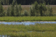 Kranichfamilie auf einem Forstweg bei Sollerön