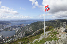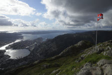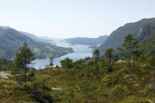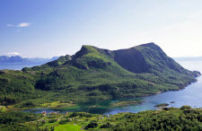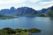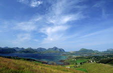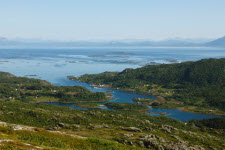 Sicht vom Digermulen auf Årsteinen und Ulvågsund im Hintergrund auf den Vestfjord