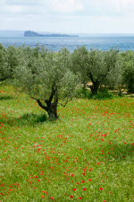 Kornfeld mit Katschmohn in der Toskana bei Bolgheri