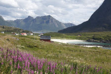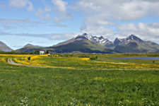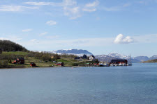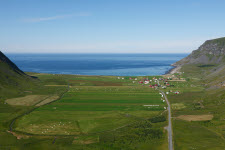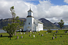 Kapelle Unnstad / Sicht auf Unnstad mit Ramnfloget und Rishamran im Hintergrund