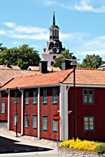 Mariestad mit Dom an der Mündung des Tidans in den Vänern
