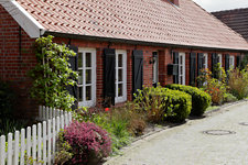 Typisches Backsteinhaus in der Dorfstraße von Rysum