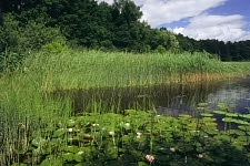 Schilfufer mit Seerosen am Ivosjön