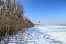 Bodensee-Ufer mit Schilfgürtel im Winter