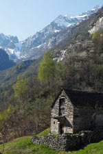 Kapelle und Rustico im Tessiner Bergdorf Cabioi bei Sonogno